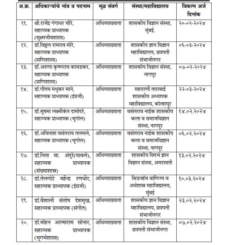 महाराष्ट्र शिक्षण सेवा, गट-अ (महाविद्यालयीन शाखा) व महाराष्ट्र शिक्षण सेवा, गट-अ (प्रशिक्षण शाखा) (अनुशेषाची पदे) या पदांच्या सरळसेवा भरतीसाठी जाहिरात प्रसिध्द करण्यात आली होती. सदर जाहिरातीस अनुसरुन महाराष्ट्र लोकसेवा आयोगाने केलेल्या शिफारशीनुसार पात्र उमेदवारांना उच्च व तंत्र शिक्षण विभागात अधिव्याख्याता, महाराष्ट्र शिक्षण सेवा, गट-अ (महाविद्यालयीन शाखा)/महाराष्ट्र शिक्षण सेवा (प्रशिक्षण शाखा), गट-अ, या पदावर नियुक्ती देण्यात आली आहे.