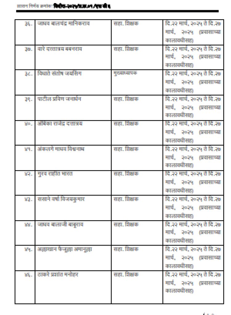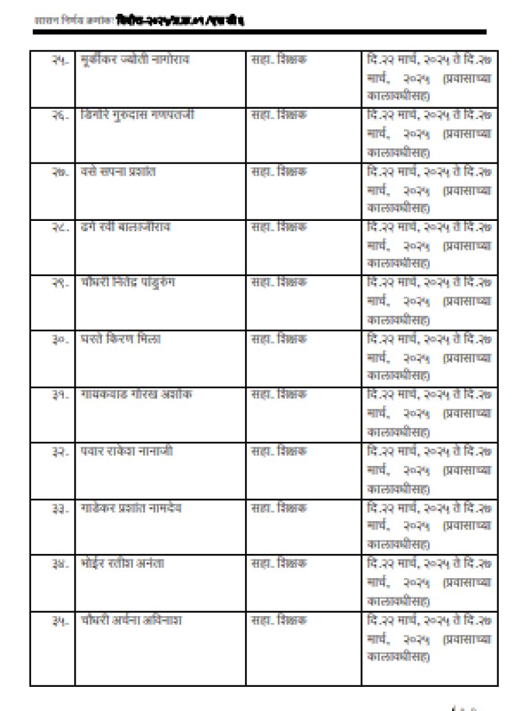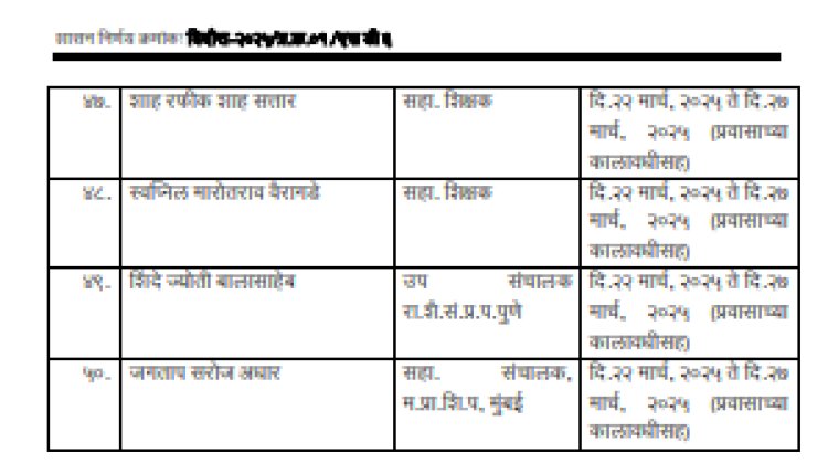 राज्यातील ५० अधिकारी (समन्वयक), मुख्याध्यापक, शिक्षकांची नावे