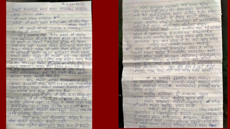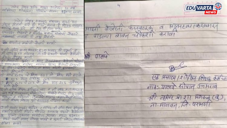 एका शिक्षकाने संस्थाचालकाच्या जाचाला कंटाळून गळफास घेऊन आपली जीवन यात्रा संपवली आहे. आपले आयुष्य संपवण्यापूर्वी शिक्षकाने एक भावनिक चिठ्ठी लिहून संस्थाचालकाच्या आर्थिक पिळवणुकीचा पाढाच वाचला आहे. गळफास घेऊन मृत्यू पावलेल्या शिक्षकाचे नाव सोपान पावले असून ते नरसिंह प्राथमिक शाळेत प्राथमिक शिक्षक या पदावर कार्यरत होते.