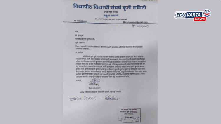 सावित्रीबाई फुले पुणे विद्यापीठाच्या विधी विभागात अतिथी प्राध्यापक म्हणून एका अपात्र व्यक्तींची निवड करण्यात आली असून प्राध्यापक होण्यासाठी आवश्यक सेट नेट तसेच पीएच.डी यांमधील एकही पात्रता परीक्षा/ पदवी नसताना प्रभारी कुलसचिव व विभाग प्रमुख यांनी आपल्या पदाचा गैरवापर करत चुकीची नियुक्ती केली आहे. हा एक गंभीर स्वरूपाचा गुन्हा आहे. दलित,बहुजन,शेतकरी कष्टकरी,कामगारांची मुलं सेट-नेट, पीएच.डी होऊन संघर्ष करत आहेत तर विद्यापीठातील अधिकारी आपापल्या नातेवाईकांना म्हणजे कुणाची बायको, कुणाचे नवरे, कुणीची मेव्हणी, कुणाची भाची, कुणाची मामी, कुणाची मुलगी/ मुलगा इ. घेण्यासाठी पदांचा वापर करत आहेत. संबंधित अपात्र व्यक्तीला आमचा वैयक्तिक विरोध नाही. परंतु,या अधिकाऱ्यांना विरोध आहे. आपण संबंधित प्रकरणाची सखोल चौकशी करून प्रभारी कुलसचिव आणि विभाग प्रमुखांचा राजीनामा घ्यावा. अन्यथा आम्हाला विद्यापीठ विद्यार्थी संघर्ष कृती समितीच्या वतीने तीव्र आंदोलन करावे लागेल,असा इशारा निवेदनाद्वारे विद्यापीठ विद्यार्थी संघर्ष कृती समितीने अध्यक्ष राहुल ससाणे यांनी निवेदनाद्वारे दिला आहे.