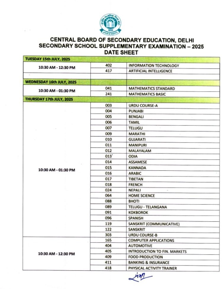 केंद्रीय माध्यमिक शिक्षण मंडळाने (CBSE) त्यांच्या https://www.cbse.gov.in/ या अधिकृत वेबसाइटवर CBSE इयत्ता 10 वी आणि 12 वीच्या पुरवणी परीक्षेचे वेळापत्रक जाहीर (Supplementary Exam Schedule) केले आहे. वेळापत्रकानुसार, CBSE इयत्ता 10 वीच्या पुरवणी परीक्षा 15 जुलै ते 22 जुलै 2025 दरम्यान होतील, तर बारावीच्या पुरवणी परीक्षा 15 जुलै 2025 रोजी एकाच दिवशी होणार आहेत.