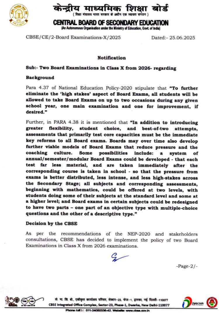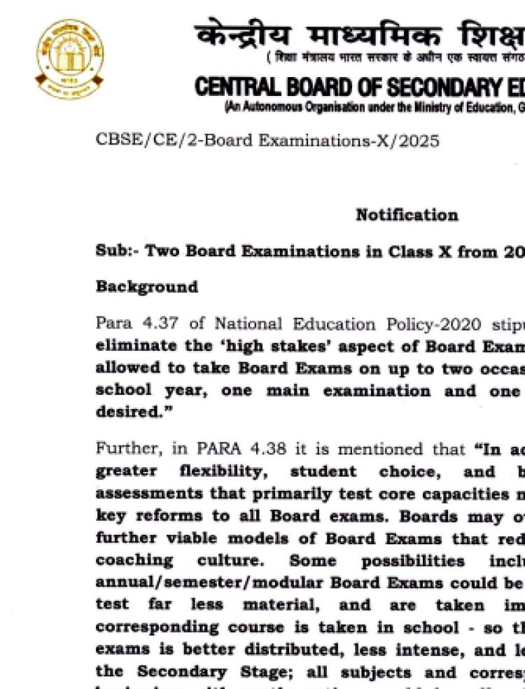 केंद्रीय माध्यमिक शिक्षण मंडळाने (CBSE) दहावीच्या बोर्ड परीक्षा (10th) वर्षातून दोनदा घेण्याच्या मार्गदर्शक तत्त्वांना मान्यता दिली आहे. २०२६ च्या शैक्षणिक सत्रापासून त्याची अंमलबजावणी करण्यात येणार आहे.