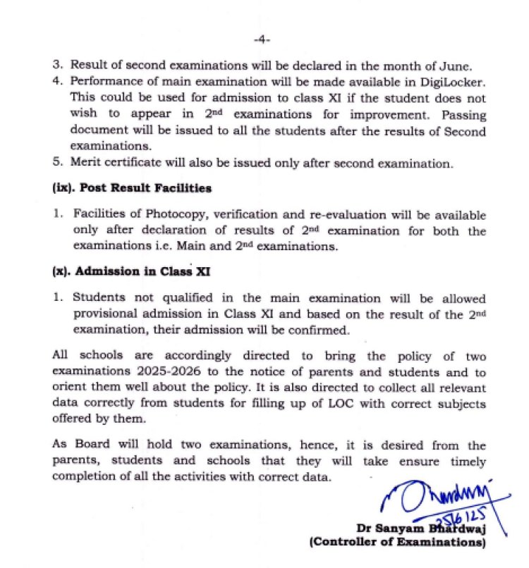 नवीन पॅटर्ननुसार, दहावीची पहिली परीक्षा फेब्रुवारीमध्ये घेतली जाईल आणि दुसरा टप्पा ‘मे’ मध्ये घेतला जाणार आहे. सर्व विद्यार्थ्यांनी फेब्रुवारी २०२६ मध्ये होणाऱ्या पहिल्या बोर्ड परीक्षेत बसणे अनिवार्य आहे. दुसऱ्या शब्दांत, विद्यार्थ्यांना फेब्रुवारीच्या परीक्षेत बसावे लागेल. मेमध्ये होणारा दुसरा टप्पा त्यांच्या कामगिरीत सुधारणा करू इच्छिणाऱ्या विद्यार्थ्यांसाठी पर्यायी असेल. सर्वोत्तम गुण मार्कशीटमध्ये राखले जातील.
