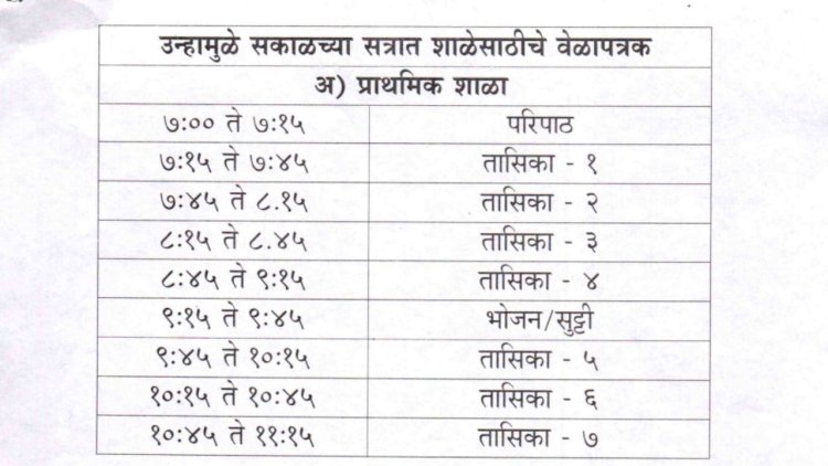 राज्यात वाढलेल्या उन्हाच्या तडाख्यामुळे विद्यार्थ्यांच्या आरोग्यावर होणारा विपरीत परिणाम टाळण्यासाठी राज्यातील प्राथमिक व माध्यमिक शाळा सकाळच्या सत्रात घेण्याबाबत राज्याच्या प्राथमिक व माध्यमिक शिक्षण संचालक कार्यालयाने निर्देश दिले आहेत. त्यानुसार प्राथमिक शाळा सकाळी 7 ते 11:15 तर माध्यमिक शाळा सकाळी 7 ते 11:45 या वेळेत घ्याव्यात असे स्पष्ट करण्यात आले आहे.