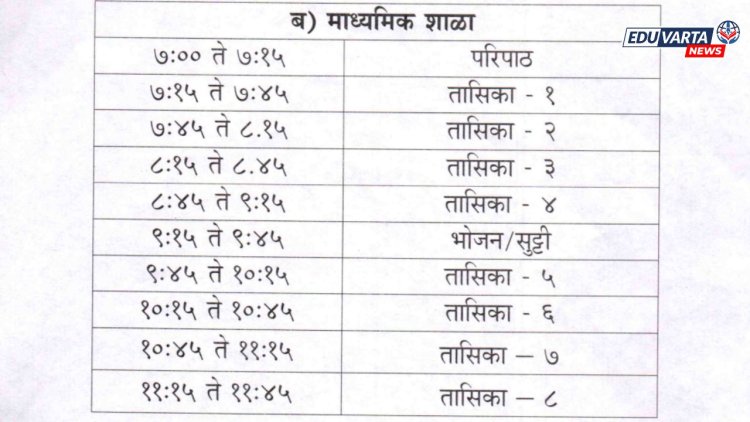 उन्हाच्या झळा वाढल्यामुळे शाळांच्या वेळेत बदल करावा, अशा मागणीची निवेदने विविध संघटनांकडून शिक्षण विभागाला प्राप्त झाली.तसेच काही जिल्ह्यांनी सकाळच्या सत्रात शाळा भरविण्याबाबत आदेश निर्गमित केले. परंतु, सर्व जिल्ह्यांमध्ये शाळांच्या वेळा वेगवेगळ्या असल्याचे निदर्शनास आल्यामुळे राज्यातील सर्व शाळांमध्ये एक वाक्यता असण्यासाठी राज्यातील सर्व शाळा शिक्षण विभागाने प्रसिद्ध केलेल्या वेळापत्रकानुसार भराव्यात, असे आदेश संबंधितांना देण्यात आले आहेत.
