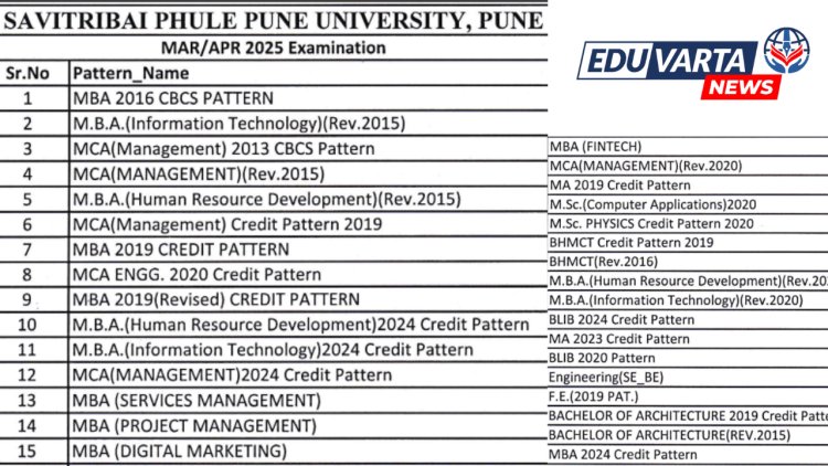 सावित्रीबाई फुले पुणे विद्यापीठाशी संलग्न पुणे, अहिल्यानगर आणि नाशिक या तीन जिल्ह्यांमध्ये संलग्न महाविद्यालयातील विद्यार्थ्यांना वाढीव मुदतीत परीक्षा अर्ज भरता येणार आहेत. त्यात एमबीए,आर्किटेक्चर, इंजिनिअरिंग, हॉटेल मॅनेजमेंट, विधी अशा विविध अभ्यासक्रमाचा समावेश आहे. विद्यापीठाने प्रसिध्द केलेल्या पत्रकात संबंधित अभ्यासक्रमाची यादी प्रसिद्ध करण्यात आली आहे.