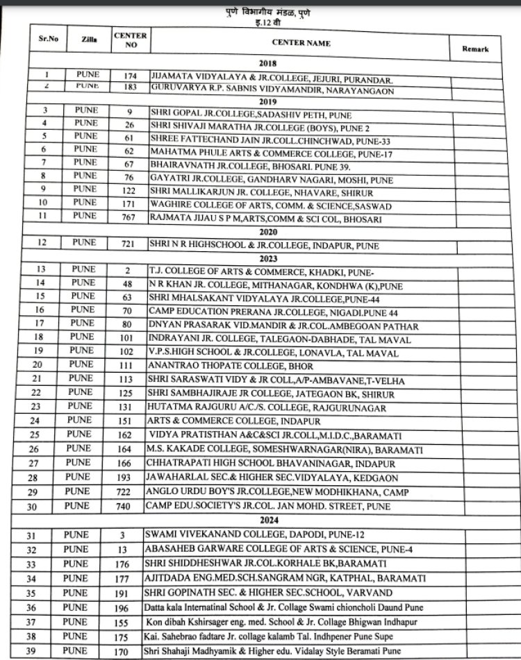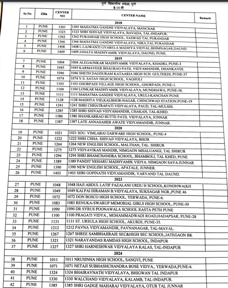पुणे जिल्हा परिषद माध्यमिक शिक्षणाधिकारी डाॅ. भाऊसाहेब कारेकर यांच्या कार्यालयाकडून २०१८ ते २०२४ या कालावधीत काॅपीचे प्रकरणे आढळलेल्या शाळांची यादी प्रसिद्ध करण्यात आली आहे.
