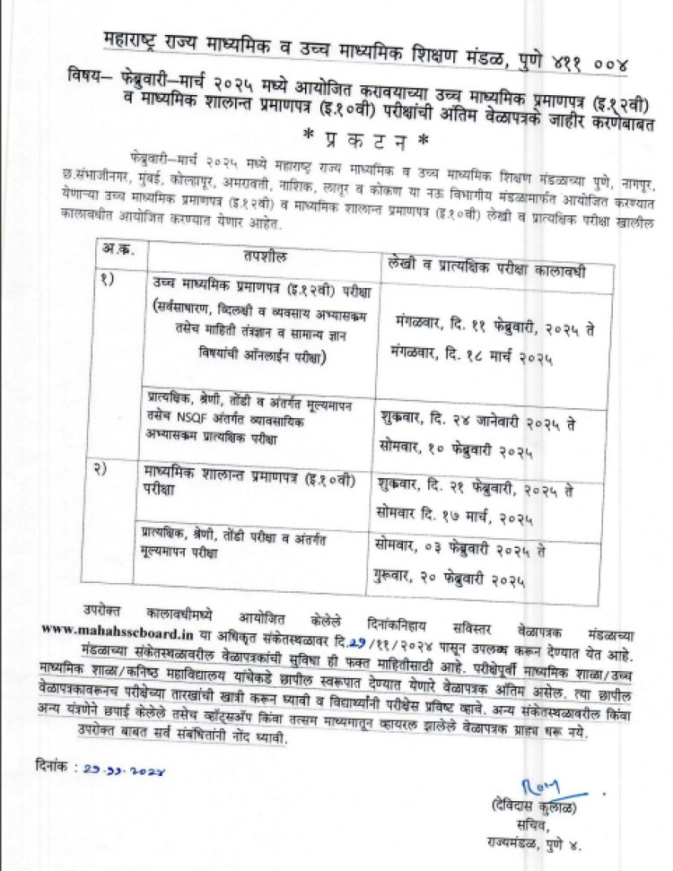 SSC & HSC Exam 2025 : इयत्ता दहावी आणि बारावीचे वेळापत्रक जाहीर